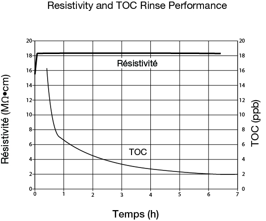 Les courbes typiques de la résistivité et du Carbone Organique Total basées sur le contrôle de la qualité de la résine Aldex MB-1 (SC) sont représentées dans la figure 3.