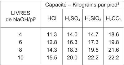 Niveau de dosage du régénérant : De 4 à 10 lb/pi3